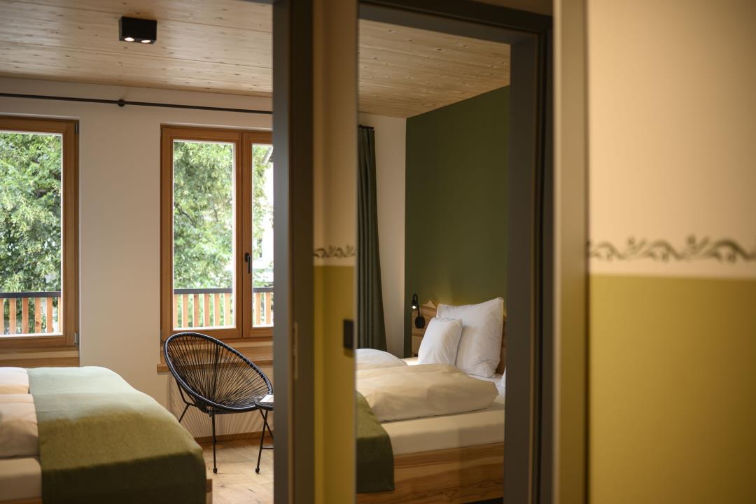 Im Sommer 2025 wurde das neu erbaute Ferienhaus „Sternenhimmel" im Dorfzentrum von Oberammergau eröffnet. Es verfügt auf 3 Etagen über 9 charmante Ferienwohnungen für 2-6 Personen, die individuelle Namen aus dem echten Sternenhimmel tragen. Sehenswert ist auch der „Sternenhimmel" im Treppenhaus. In diesem Haus haben Sie die Möglichkeit, gemeinsam mit Familie und Freunden zu verreisen und gleichzeitig Ihren privaten Freiraum zu genießen.