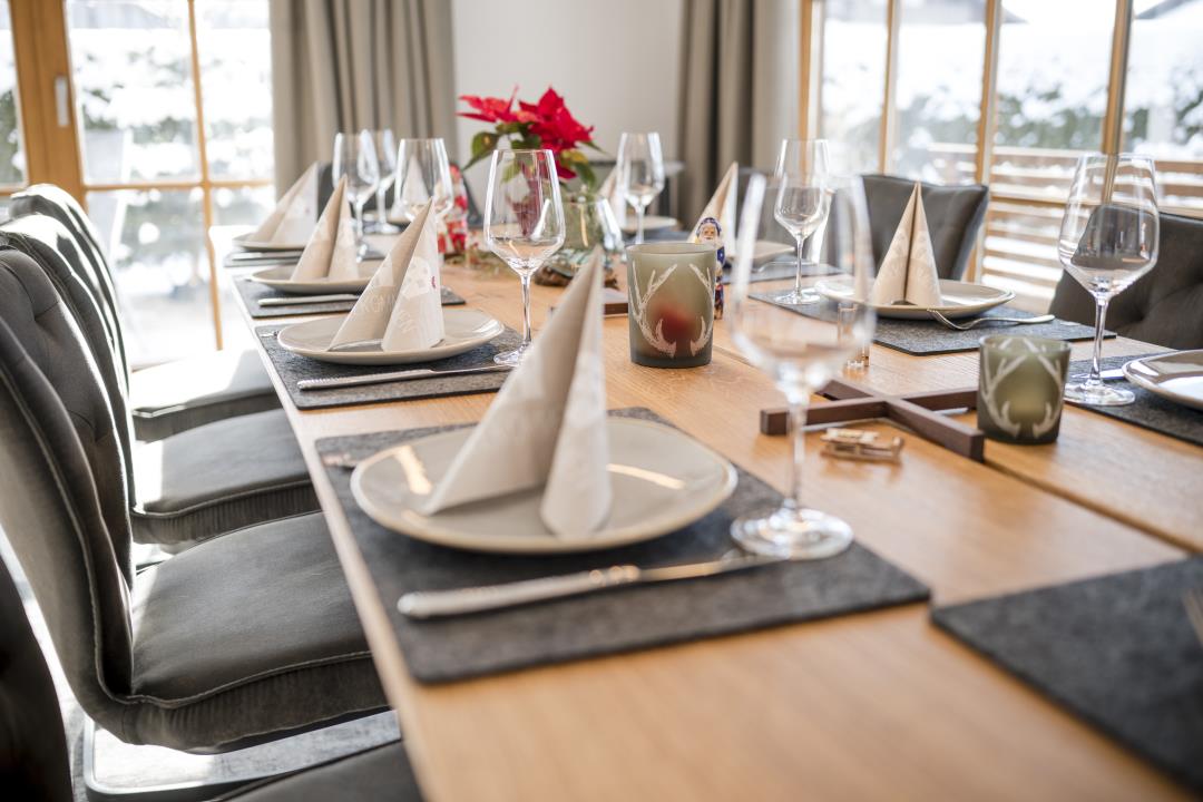 Zusätzlich erwarten Sie 2 komplett ausgestattete Bäder, 2 Tages-WC, eine Küche mit Spülmaschine, Herd, Kaffeevollautomat, Kühlschrank mit Eiswürfelausgabe sowie ein gemütliches Wohnzimmer mit großem Esstisch und Leseecke. Die angrenzende Terrasse mit Gasgrill und Heizstrahler sowie zwei Balkone (nach Süden und Osten) in den oberen Etagen ermöglichen es Ihnen, den fantastischen Ausblick auf die umliegenden Berge zu genießen. Zur Entspannung lädt die Infrarotkabine im Untergeschoss ein. Darüber hinaus verfügt das Haus über Waschmaschine, Trockner, Bügelbrett und -eisen, Babybett und Kinderstuhl.