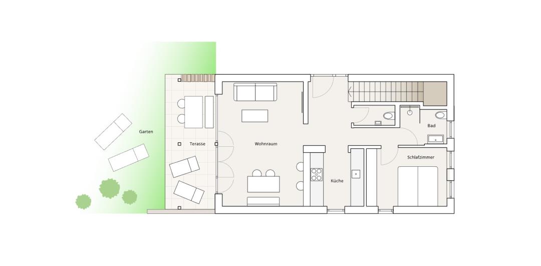 Im h9 TAL wohnen Sie auf 100 Quadratmetern mit eigenem Garten und gemütlichem Sauna- und Wohlfühlbereich. Die Wohnung TAL im Erdgeschoss hat ein großzügiges Wohn- und Esszimmer, hinter der Bar befindet sich eine offene Küche. Die Einrichtung ist hochwertig und größtenteils massgefertigt.