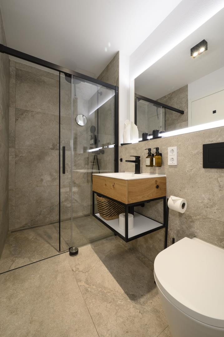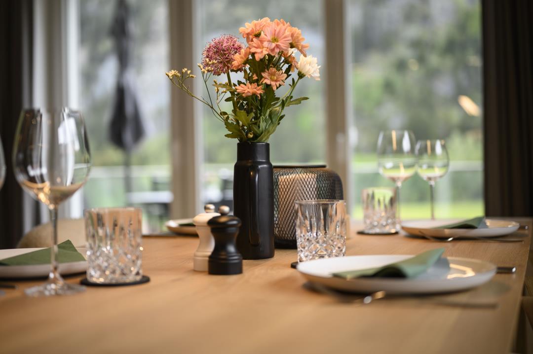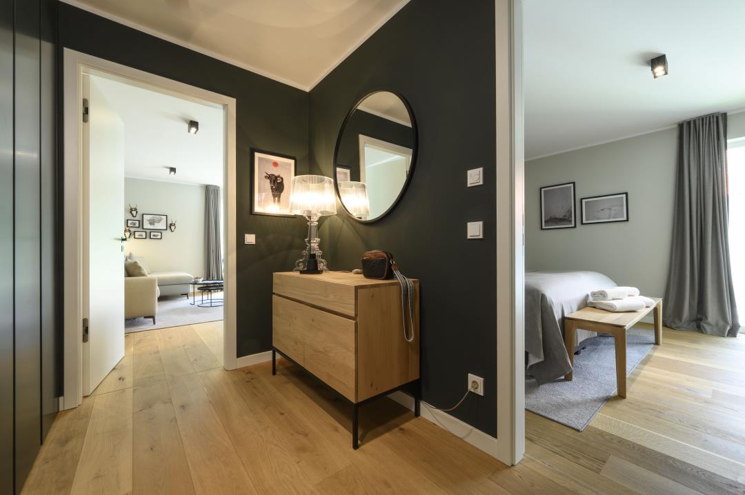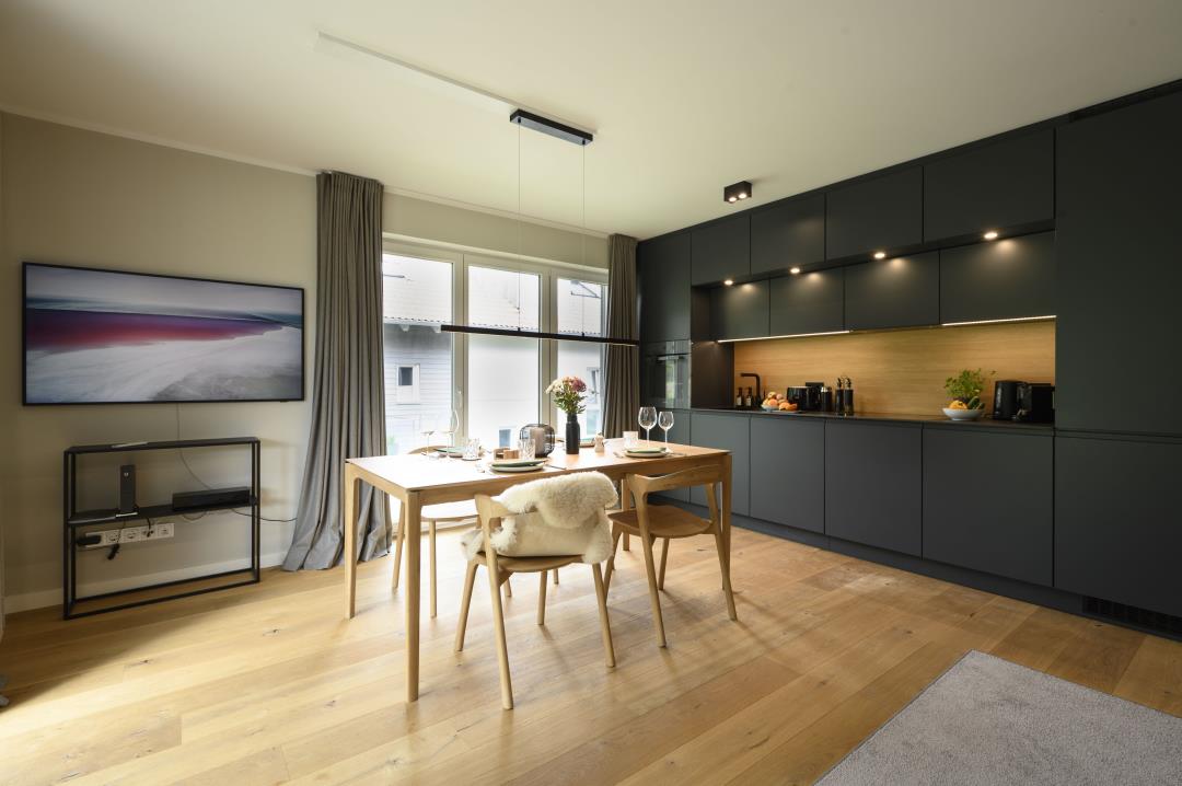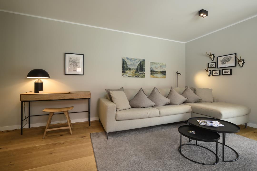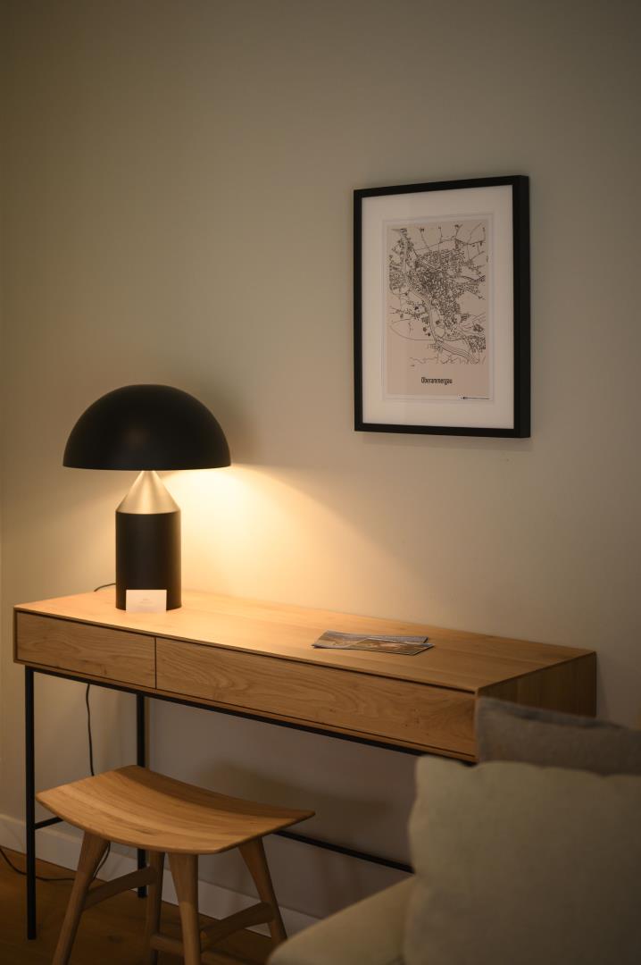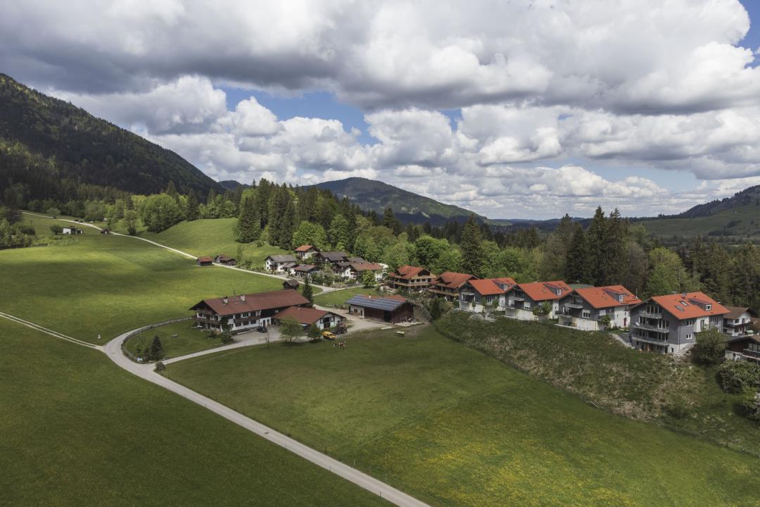 Auf einer Fläche von ca. 63 qm bietet Ihnen diese Ferienwohnung im 1. Obergeschoss ein großzügiges Raumangebot: 1 gemütliches Schlafzimmer, 1 Bad mit Dusche, Waschmaschine & Trockner sowie ein großes Wohnzimmer mit hochwertigem Eichendielen, Schlafsofa und großem Fernseher. Die angrenzende offene Küche ist mit allem ausgestattet, was Sie für einen erholsamen Aufenthalt benötigen. Auf dem großen Balkon mit Loungemöbeln können Sie den wunderschönen Blick auf die umliegenden Berge ausgiebig genießen. Im Haus stehen Ihnen Bügelbrett und -eisen sowie ein Abstellraum für Ski und Fahrräder zur Verfügung.